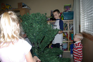The kids getting the annual talk about not touching the glass ornaments (I have a lot of them from my mom and Grandma) and about trying to spread the ornaments out over the whole tree and not clump everything on one branch.